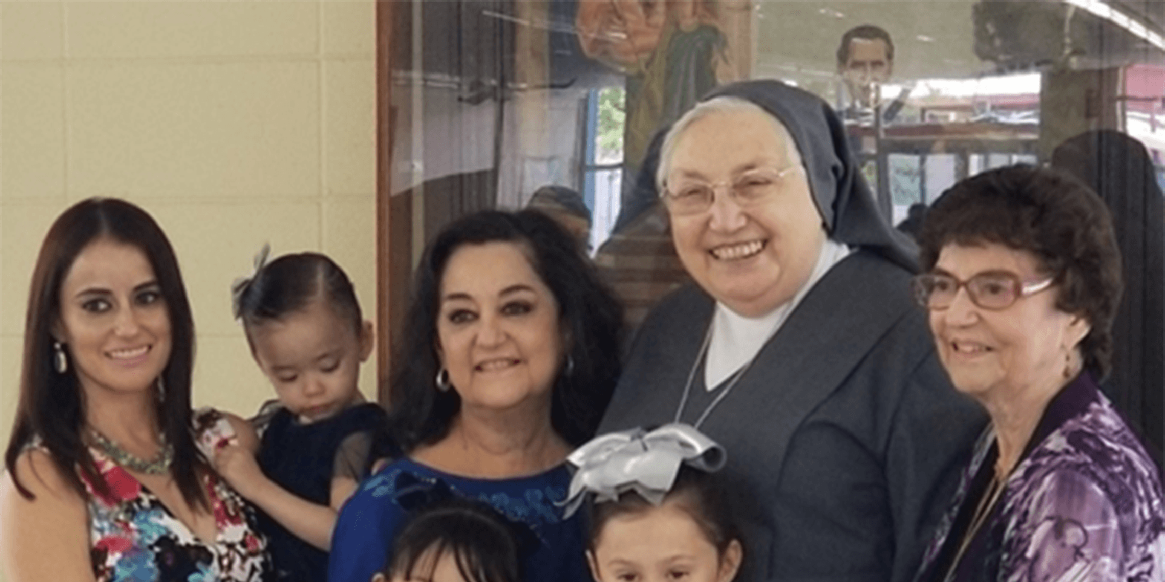 4 Generations of Past Pupils from Mary Help of Christians in Laredo, TX. Back Row: Marla Alanis, Arely Alanis (baby) Diana Carrillo, Mother Yvonne and Minerva Trevino Front Row: Alyna Alanis and Amelie Alanis